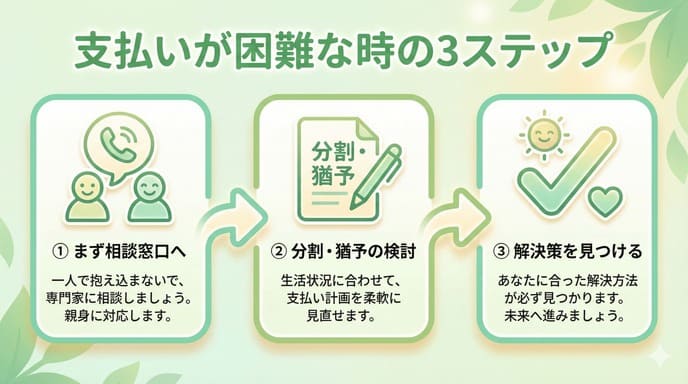 支払いが困難な場合は、必ず事前に相談してください。