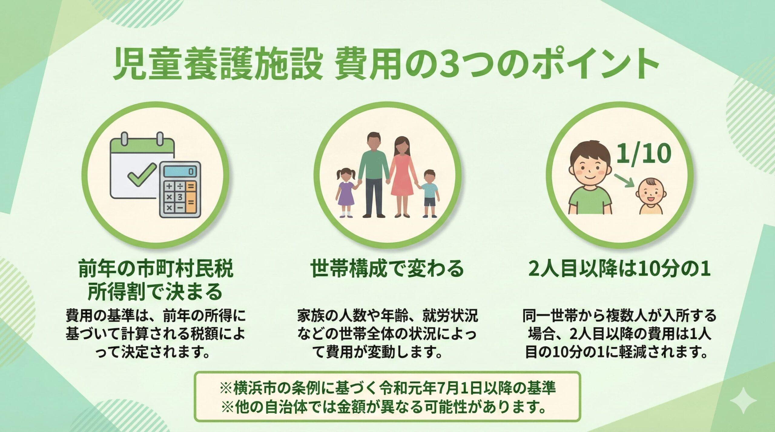 この記事では、WEBで公開されている横浜市の条例(令和元年7月1日以降適用)に基づいて、児童養護施設の入所費用を詳しく解説しています。