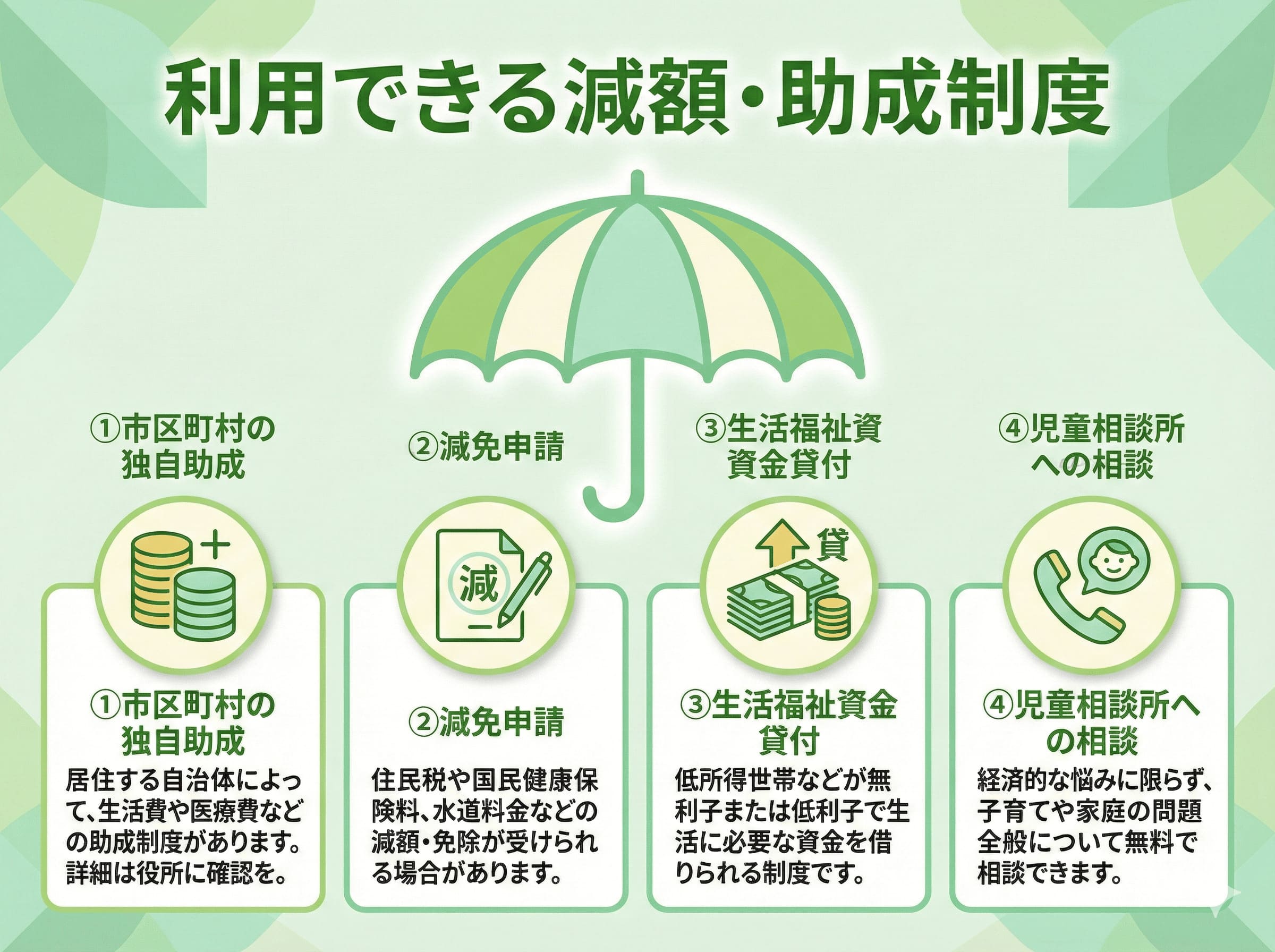 費用減免、助成制度の案内